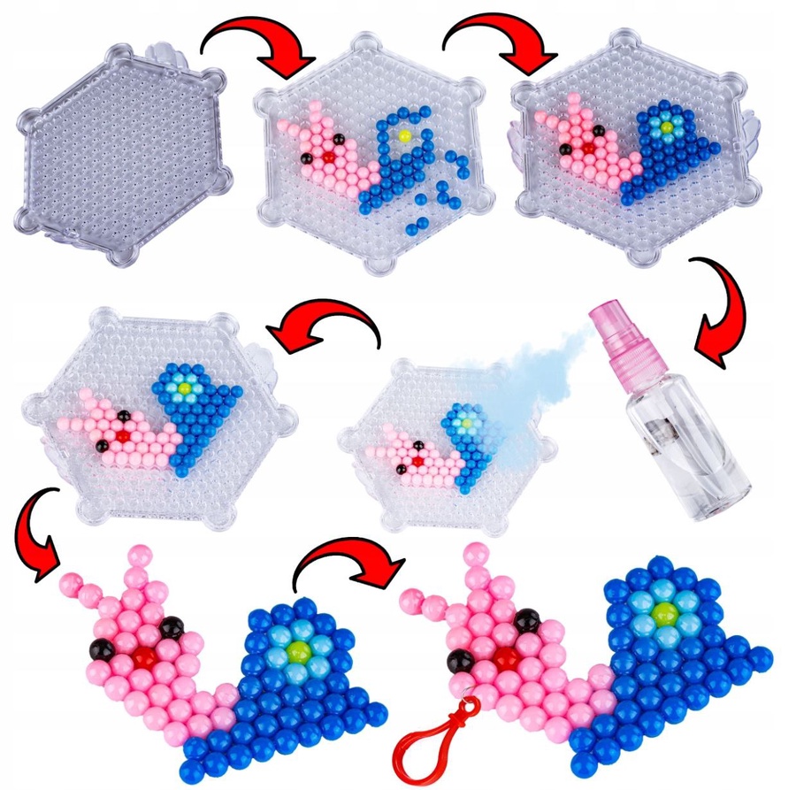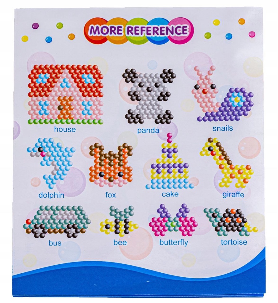اللعبة تأتي مع 2 بورد للتصميم و قلم تصميم للخرز لسهولة التشكيل، بالإضافة إلى كتالوج به العديد من الأشكال الجاهزة.