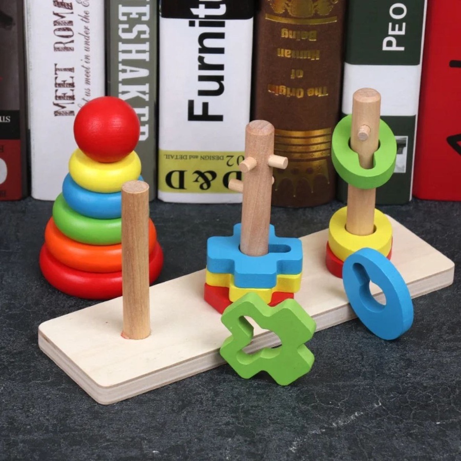 لعبة حل مشكلات مع عمود حلقات هي لعبة منتسوري خشبية مميزة تجمع بين التعلم و التسلية.