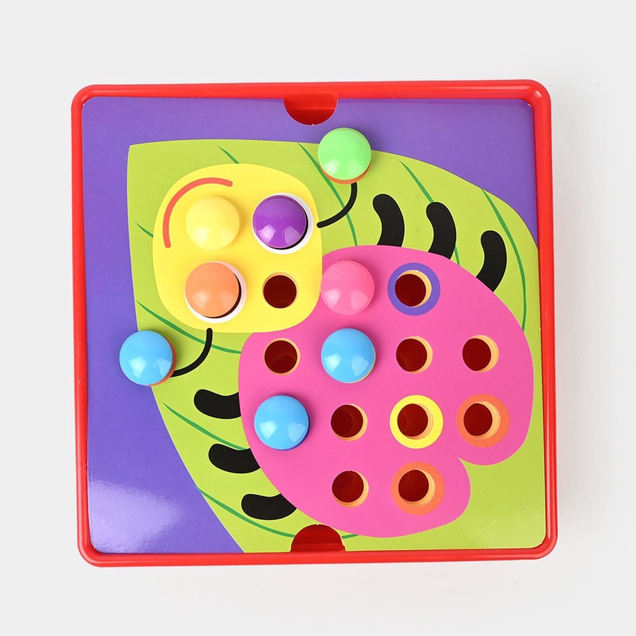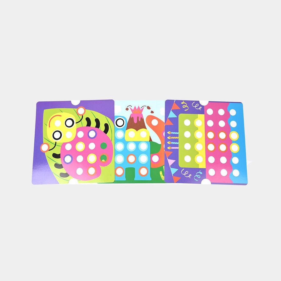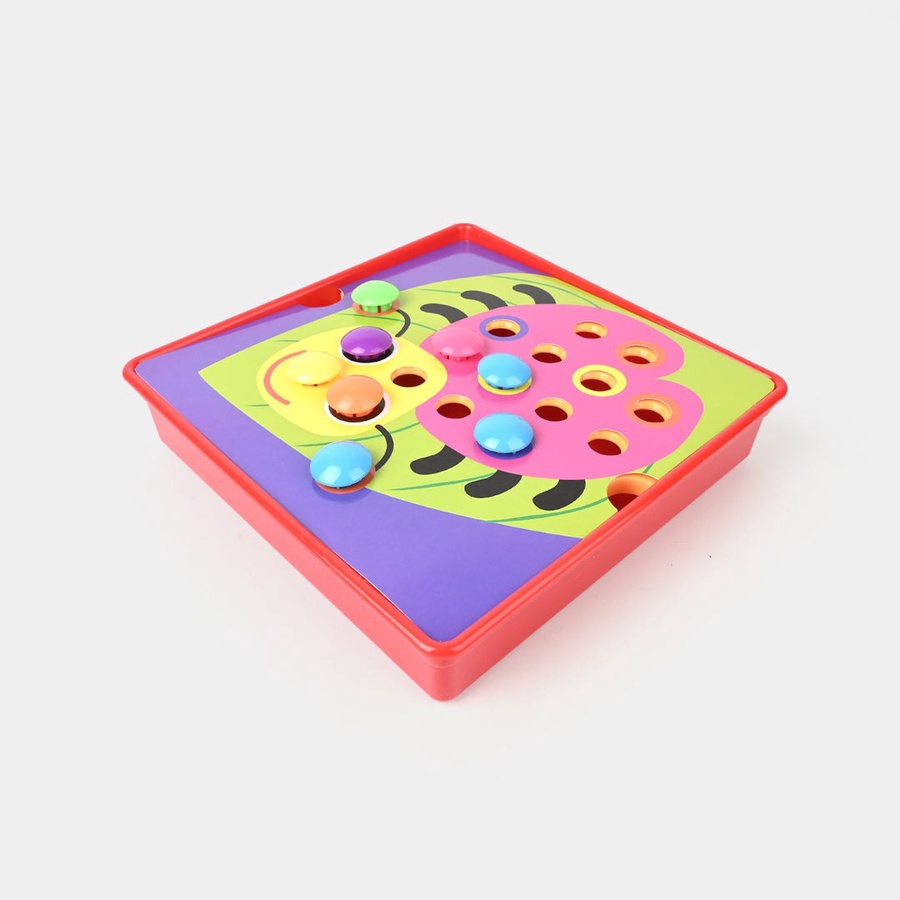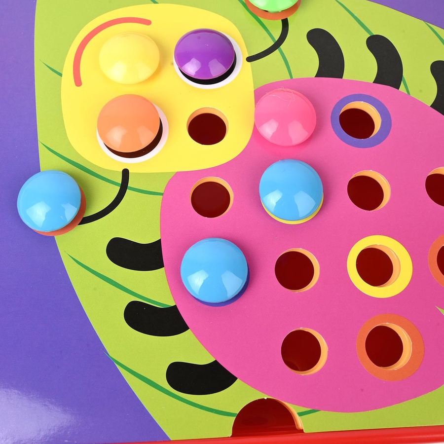 اللعبة تحتوي على 12 كارت كبار بأشكال كرتونية مختلفة مثل: أسد، بومة، سمكة، أرنب، عربية، زرافة، كابوريا وغيرها، ويأتي معها أزرار كبيرة وعيون.
