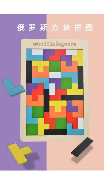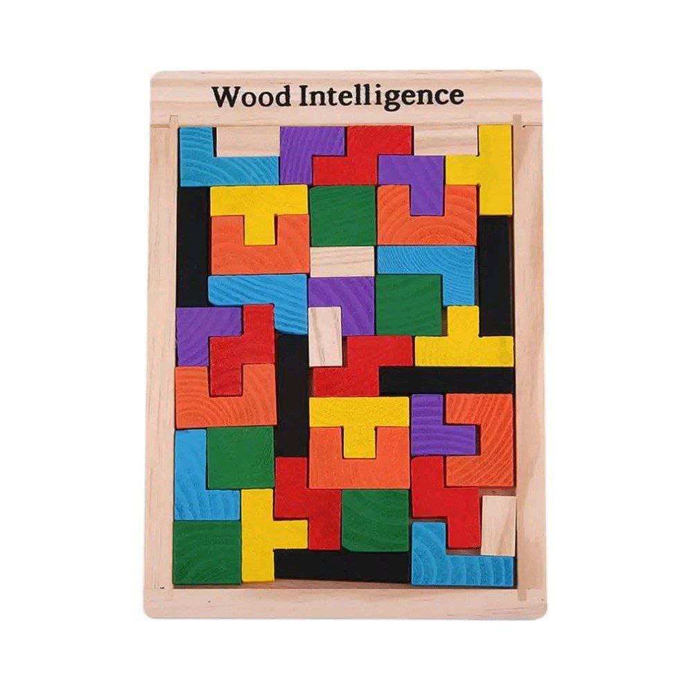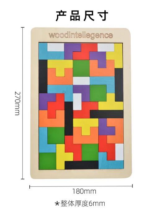 اللعبة تحتوي على قطع خشبية، حيث يجب على الطفل ملء الفراغات بطريقة تجعل كل المربعات ممتلئة.